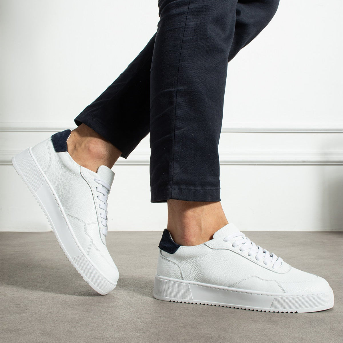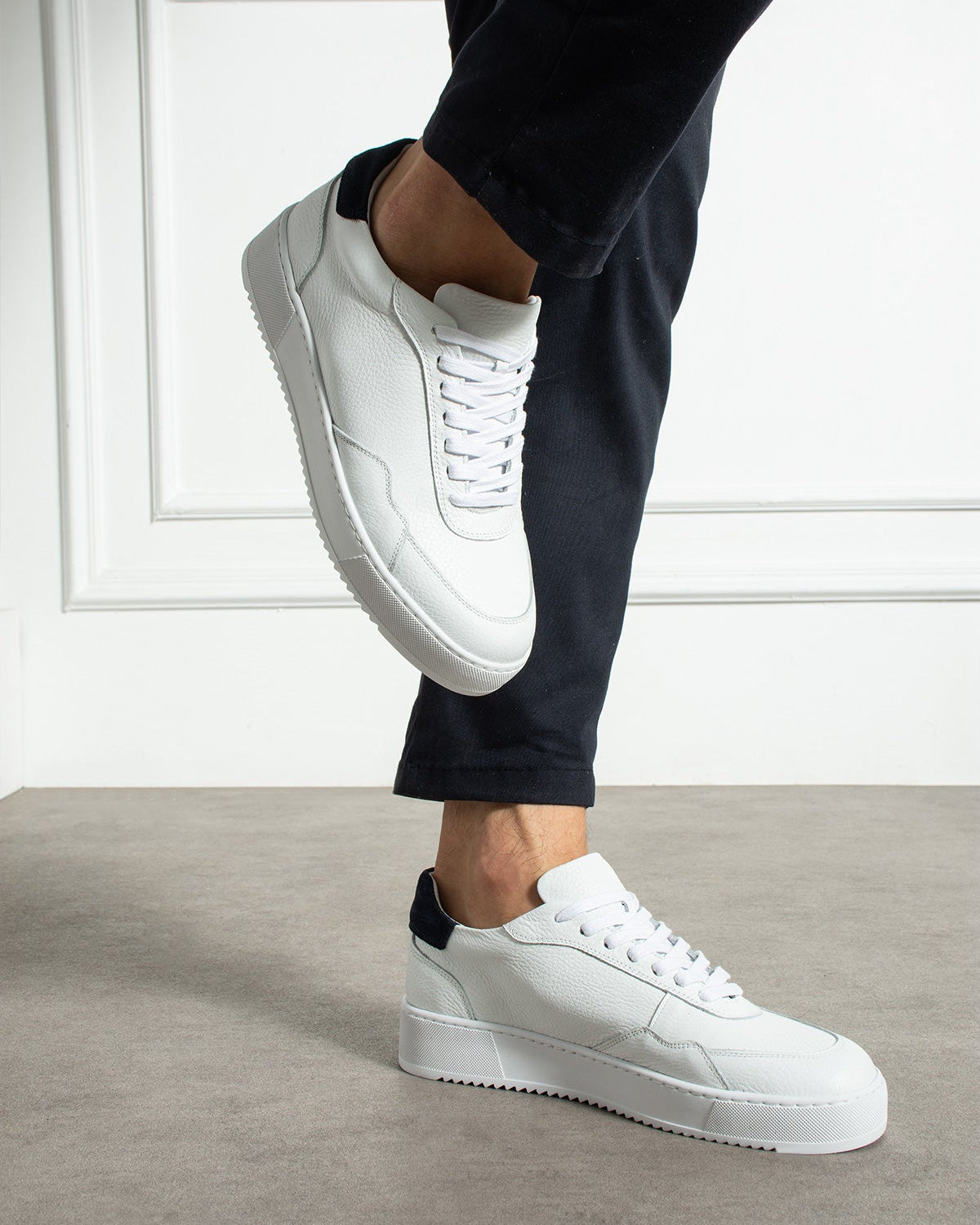 The Enesis features a new elegant and sporty look, handcrafted from high-quality Nappa and suede leather. The interior is made of natural leather and includes memory foam for enhanced comfort. This model is designed with a flexible, uniquely crafted rubber sole, ensuring optimal support and a superior walking experience.